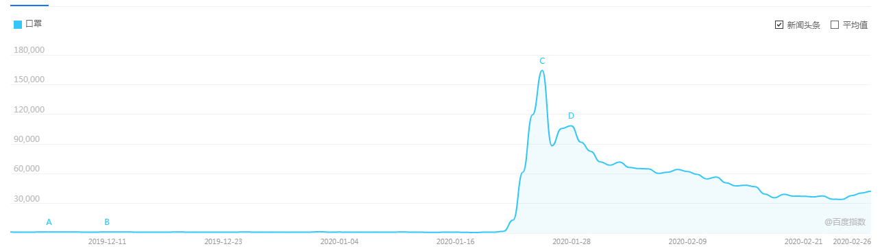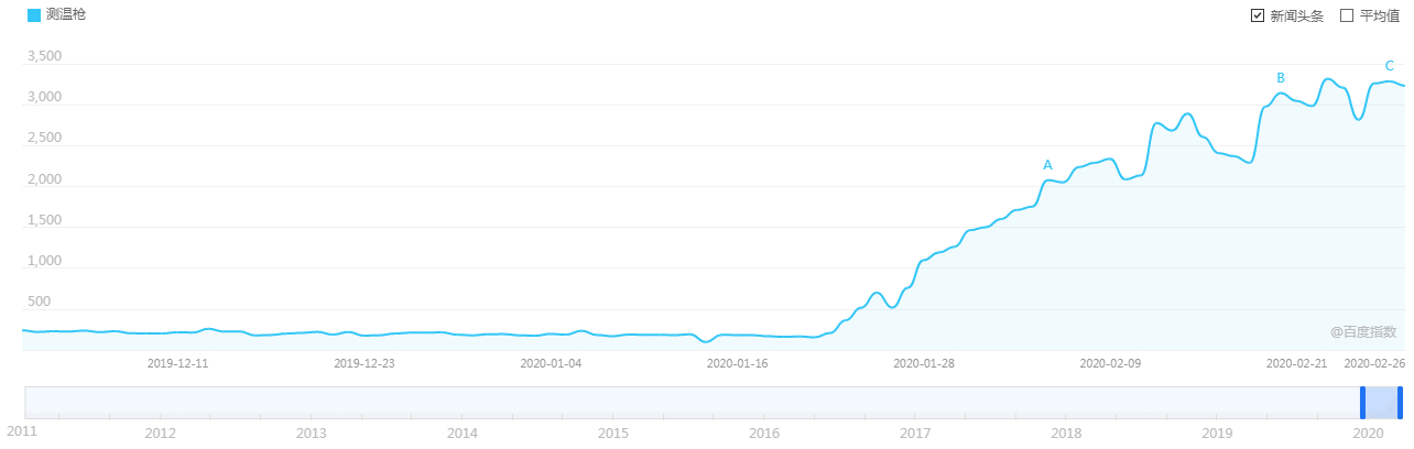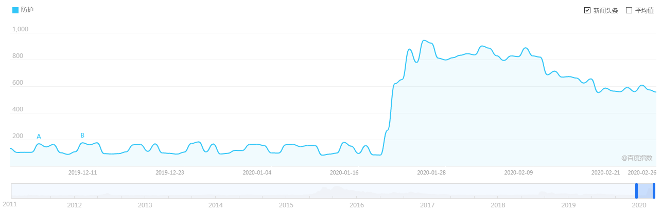 “防護(hù)”、“口罩”“消毒”、“測溫槍”等關(guān)鍵詞由冷門迅速成為熱搜焦點,搜索指數(shù)上升趨勢明顯。