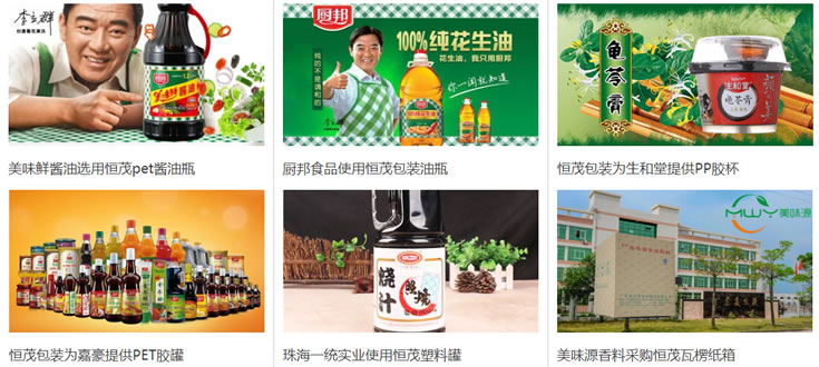 陽江恒茂包裝制品有限公司成立于2013年,注冊資本500萬美元。主營食品級塑膠膠罐產品及瓦楞紙箱。現有員工200人,其中技術人員50人。具備年產塑膠成品1.2億個以上和瓦楞紙箱1億個以上的綜合生產能力。目前長期合作客戶有廚邦、美味鮮、美味源等。