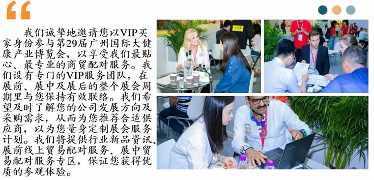 “特邀買家服務”是IHE China廣州國際大健康展組委會針對有真實大健康類產品采購意向和需求的上下游企業單位、終端用戶等機構參觀觀眾提供的VIP專享服務。如果您是大健康產業上下游設備商、終端用戶企業\大健康企業的市場/技術/采購總監、企業負責人或對接人等,只要您有真實的采購意向和需求,向我們發出申請,就可成為我們的特邀買家