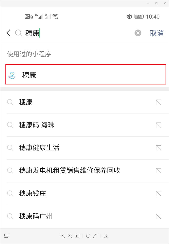 方式②:在微信搜索欄輸入「穗康」,點擊進入“穗康”小程序。