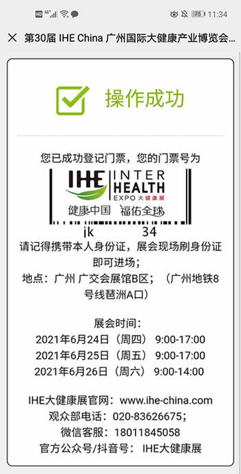 03注冊成功后,即可獲取電子門票,屆時掃碼入場