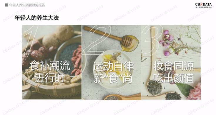 而年輕人養(yǎng)生也越來越明顯地表現(xiàn)出四大趨勢:隨時隨地、花式混搭、四季養(yǎng)生、吃出顏值。