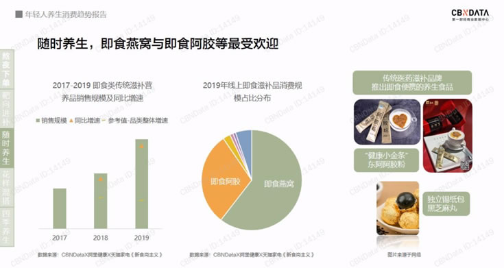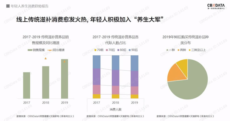 從關(guān)注事后治療,到關(guān)注事前預(yù)防。養(yǎng)生產(chǎn)品“零食化”趨勢明顯,隨時隨地健康輕松養(yǎng)生,滋補(bǔ)和營養(yǎng)很重要;對年輕人而言,更多人傾向于選擇具有功能性食品/保健產(chǎn)品,以輔助健康調(diào)理(提高免疫力、延緩衰老)。