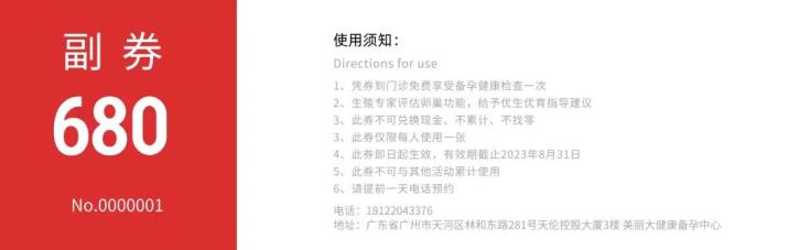 有孕前體檢需求的觀眾朋友,可以提前登記婦幼健康展門票;憑展會預登記門票,即可到會免費領取孕產健康評估代金券1張,價值680元(僅限前10名)。