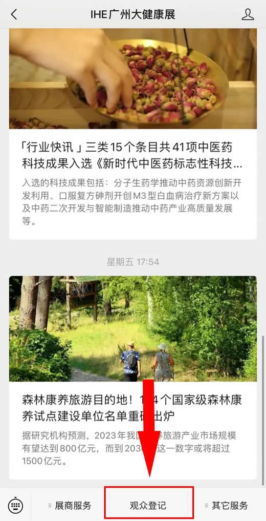 STEP1:掃碼關注展會公眾號“IHE廣州大健康展”。