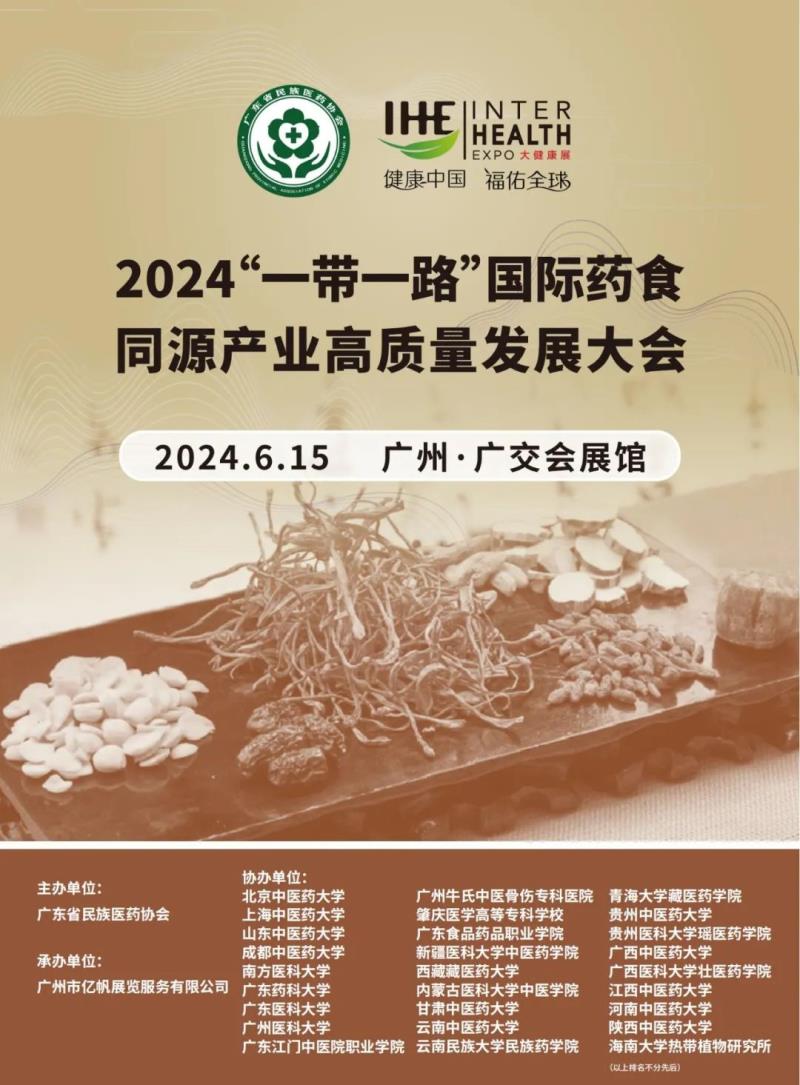 為推動國民健康事業(yè)發(fā)展,助推藥食同源產(chǎn)業(yè)高質(zhì)量發(fā)展,促進(jìn)藥食同源產(chǎn)業(yè)國際交流與合作,2024“一帶一路”國際藥食同源產(chǎn)業(yè)高質(zhì)量發(fā)展大會將于2024年6月15日在廣州·廣交會展館舉辦。本次大會以“共建藥食同源新絲路 挖掘藥食同源新價(jià)值”為主題,邀請“政、產(chǎn)、學(xué)、研”等智慧和創(chuàng)新力量、藥食同源全產(chǎn)業(yè)鏈上下游企業(yè)及重點(diǎn)專業(yè)買家參會,全力打造產(chǎn)業(yè)鏈間的高效交流合作平臺。本次大會特別聚焦推進(jìn)“一帶一路”藥食同源產(chǎn)業(yè)共建共享,特邀外國駐華大使館官員、外國駐華貿(mào)易處代表、國際企業(yè)代表以及國際采購商等海外嘉賓參會。