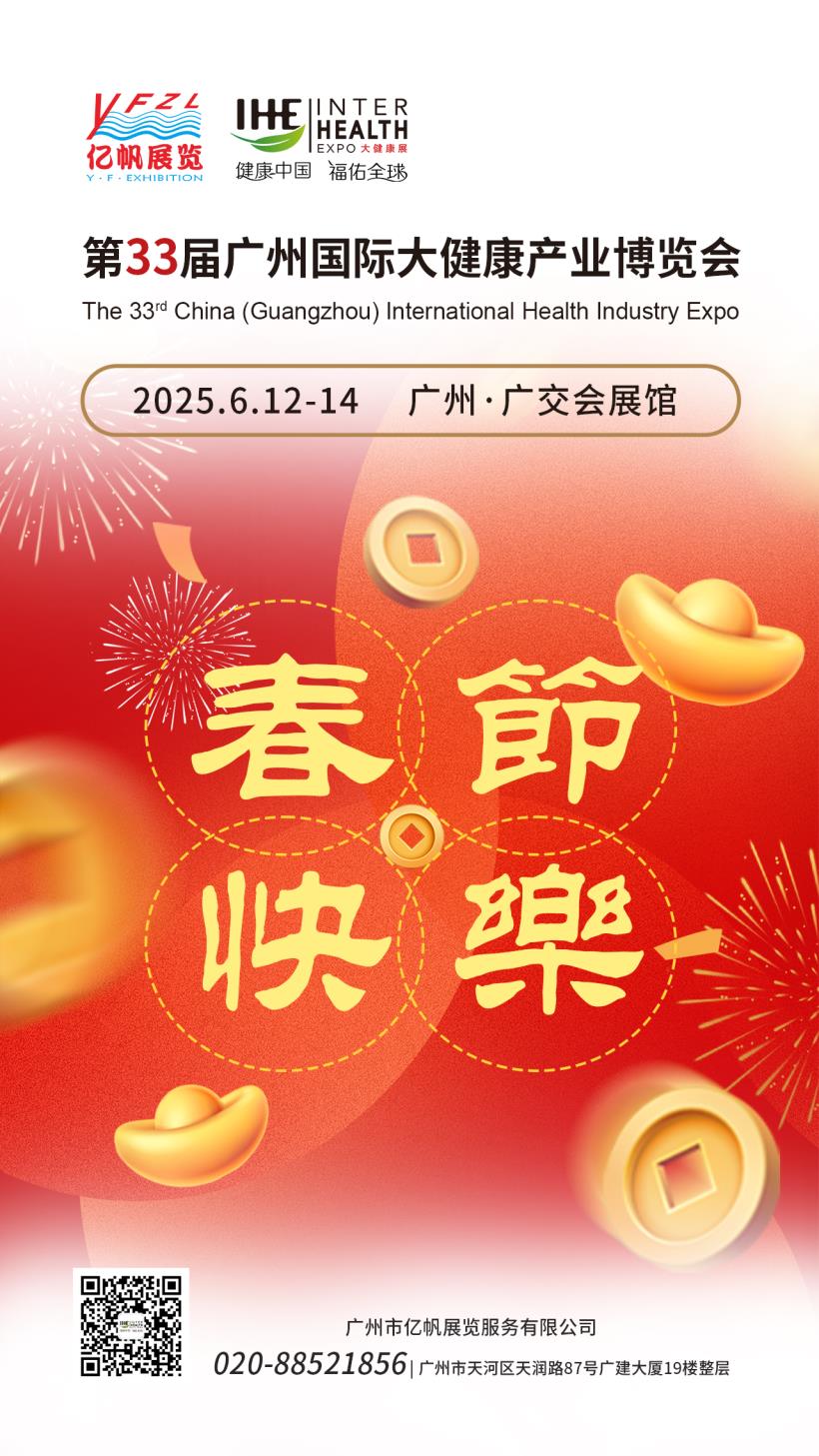 IHE China IHE第34屆廣州國際大健康產業博覽會將于2026年6月4-6日在廣州?廣交會展館舉行,大健康博覽會由廣州市億帆展覽服務有限公司主辦,是國內首個提出“大健康博覽會”概念。大健康展會已連續成功舉辦到第34屆,已成為亞太地區頗具規模的大健康博覽會,2023年榮獲廣州市商務局頒發“成功舉辦18年”獎牌!。