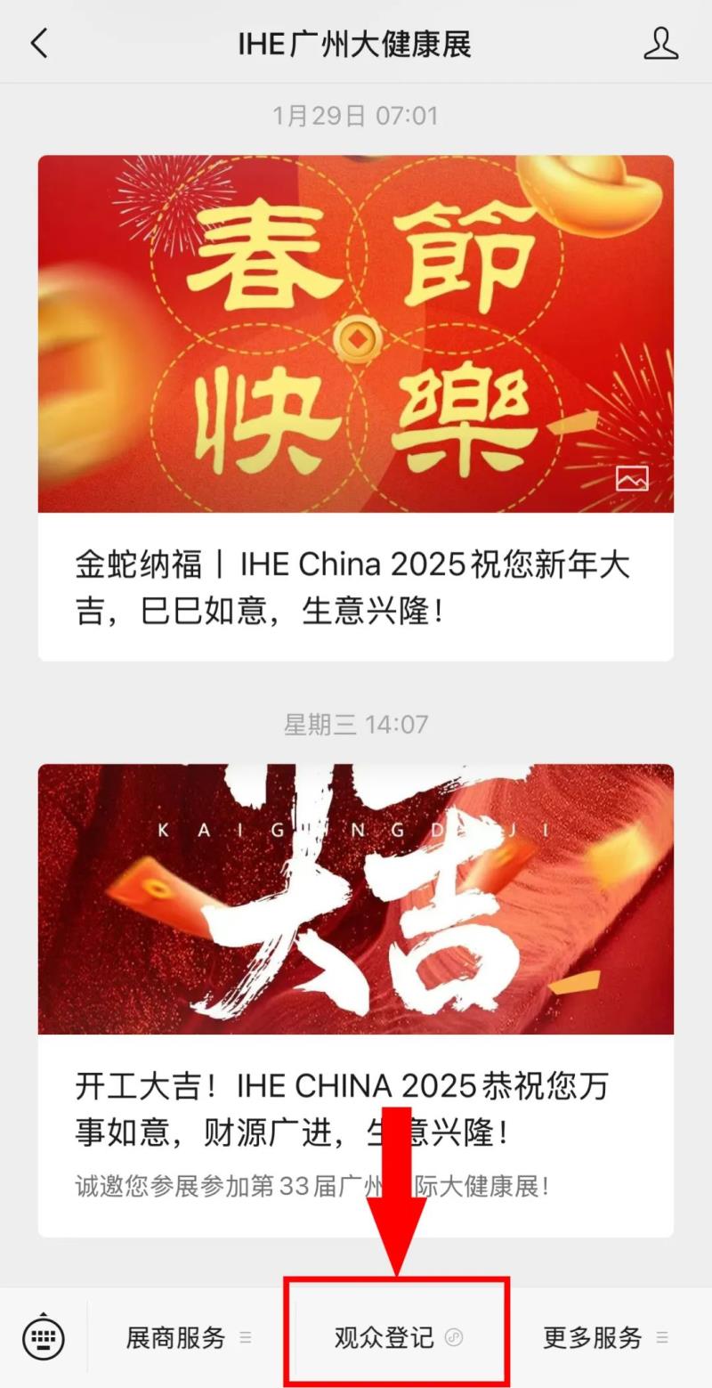 01掃碼關注公眾號STEP1:掃碼關注展會公眾號“IHE廣州大健康展”。 |