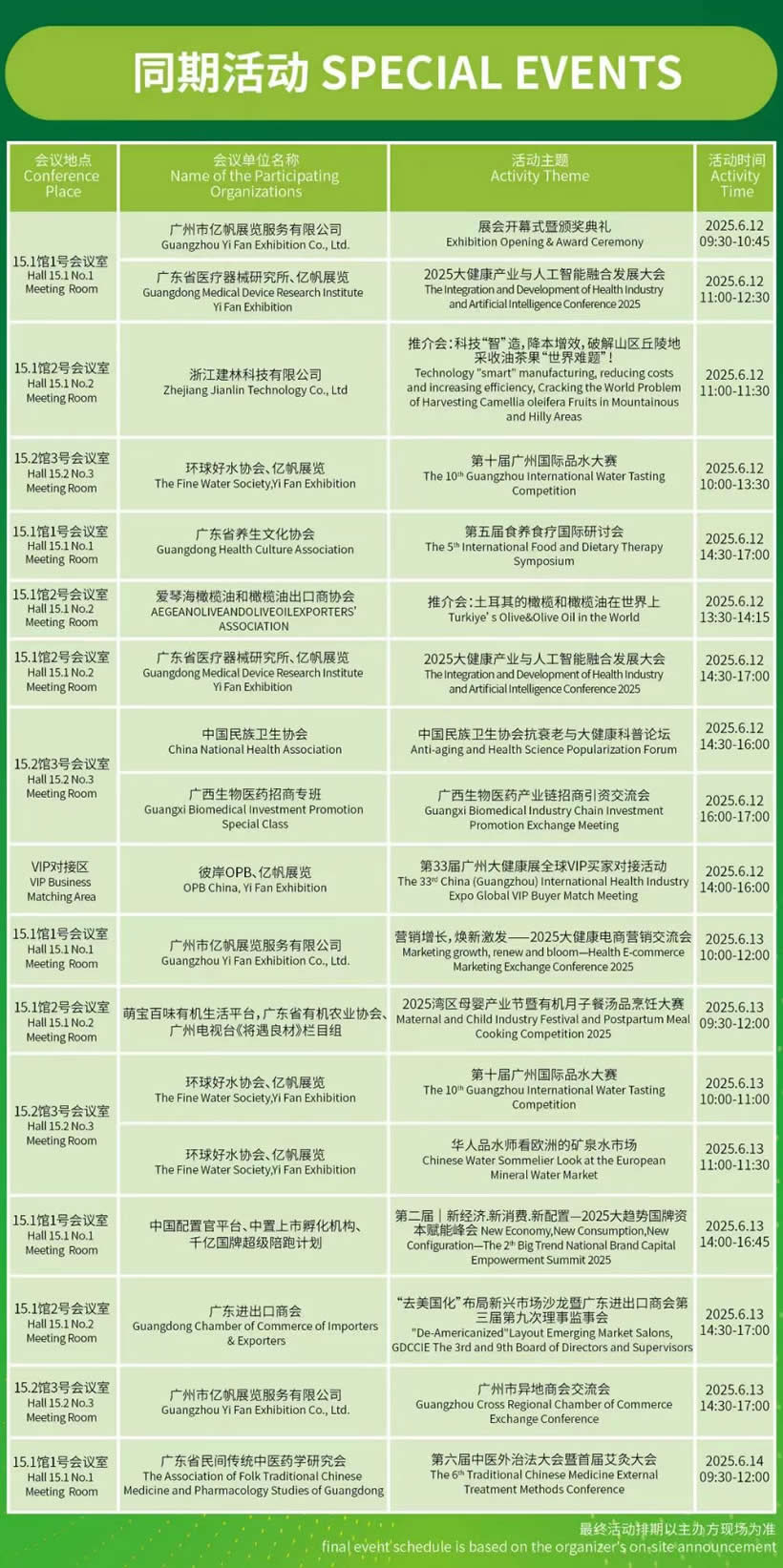 2025第33屆廣州國(guó)際大健康產(chǎn)業(yè)博覽會(huì)預(yù)計(jì)將有千余家品牌商參展,參展品類包括:健康食品及營(yíng)養(yǎng)補(bǔ)充劑、進(jìn)口進(jìn)口食品及用品、中醫(yī)藥及滋補(bǔ)品、智慧養(yǎng)老、氫健康產(chǎn)品及健康飲用水、家庭醫(yī)療設(shè)備、婦幼健康、益生菌及腸道健康、跨境醫(yī)療及醫(yī)療旅游、生物制品及抗衰美容及睡眠健康、大健康產(chǎn)業(yè)園區(qū)及基地、包裝及生產(chǎn)設(shè)備等,全球商機(jī),一展觸達(dá)。