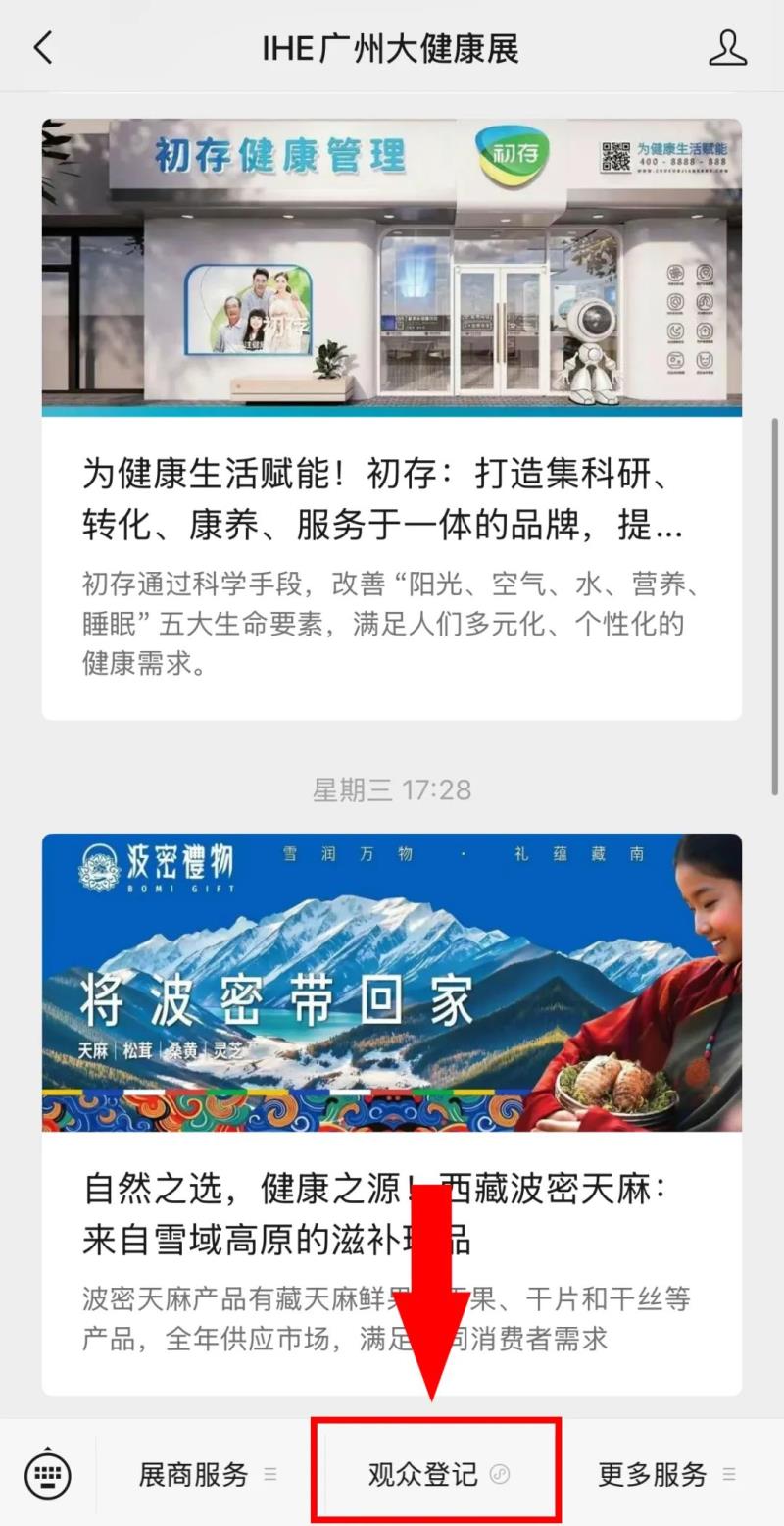 01掃碼關注公眾號STEP1:掃碼關注展會公眾號“IHE廣州大健康展”。 |