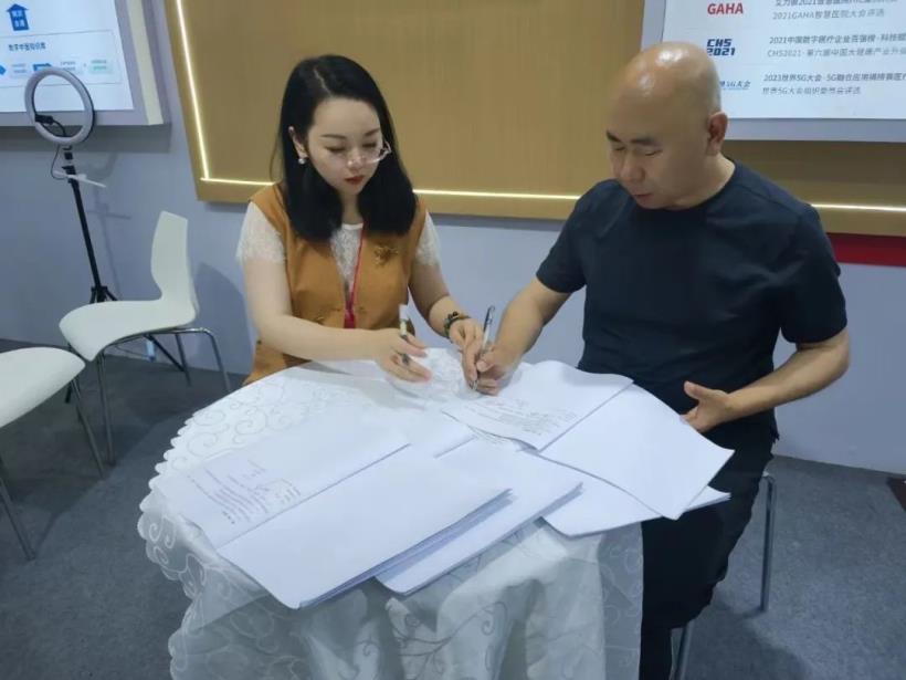 (展商與客戶現(xiàn)場敲定合作事宜)