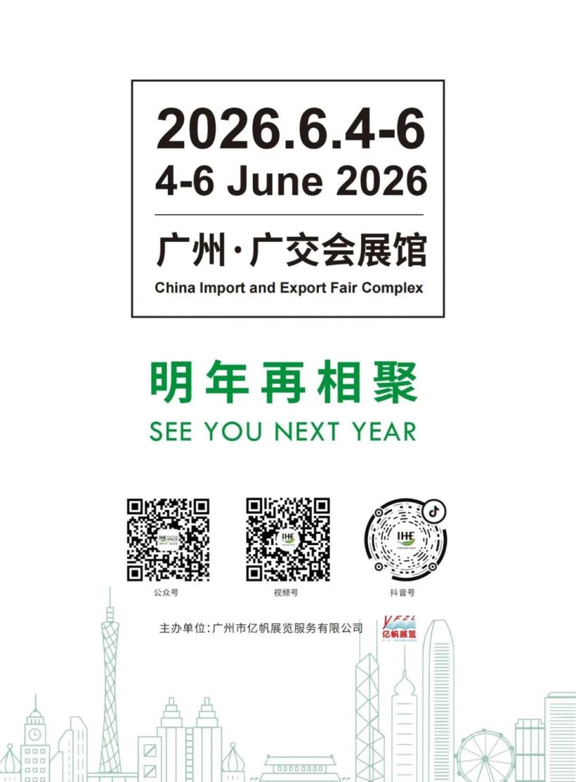 衷心感謝廣大參展商和采購商對本屆展會的大力支持!期待2026年6月4-6日,廣州·廣交會展館,第34屆廣州國際大健康產業博覽會再會!