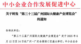 中小企業合作發展促進中關于轉發“第三十三屆廣州國際大健康產業博覽會”的通知