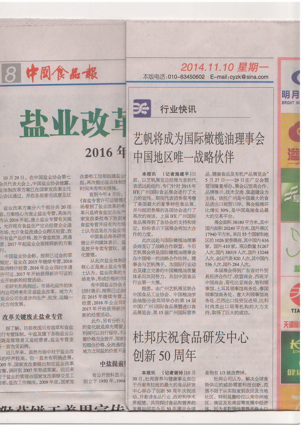 中國食品報:藝帆攜手國際橄欖油理事會,成為中國地區唯一戰略合作伙伴