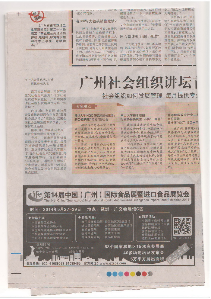 IFE2014 第14屆國際食品展暨進口食品展覽會,聚63國和地區千家展商5萬平方展出面積,將于5月27-29日廣交會展館展出,今日《廣州日報》A4版有示;歡迎參觀。                             IFE2014 組委會http://gzdaily.dayoo.com/html/2014-05/15/content_2628454.htm