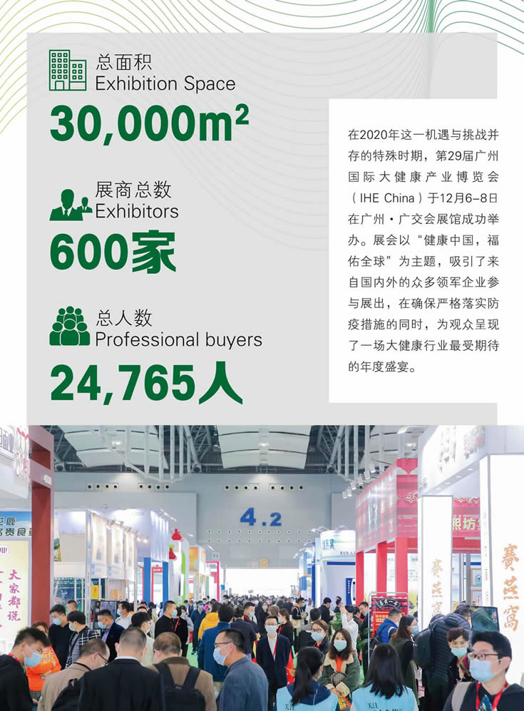 在2020年這一機遇與挑戰(zhàn)并存的特殊時期,第29屆廣州國際大健康產(chǎn)業(yè)博覽會(IHE China)于12月6-8日在廣州·廣交會展館成功舉辦。展會以“健康中國,福佑全球”為主題,吸引了來自國內(nèi)外眾多領(lǐng)軍企業(yè)參與展出,在確保嚴(yán)格落實防疫措施的同時,為觀眾呈現(xiàn)了一場大健康行業(yè)最受期待的年度盛宴。