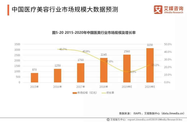 中國醫(yī)療美容市場2018年規(guī)模達(dá)2245億元,2012-2015年中國醫(yī)療美容市場的復(fù)合增長率為22.7%,預(yù)測2020年將達(dá)3150億元。艾媒咨詢分析師認(rèn)為,中國醫(yī)療美容行業(yè)有比較大的增長潛力,特別是如新氧等公司IPO上市成功,會進(jìn)一步提高醫(yī)美行業(yè)的資本關(guān)注度。