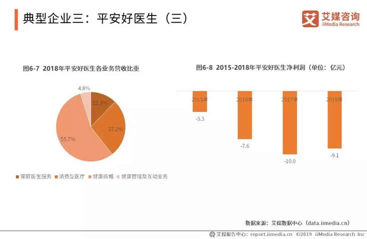 當(dāng)前平安好醫(yī)生的業(yè)務(wù)主要分為家庭醫(yī)生服務(wù)、消費(fèi)型醫(yī)療業(yè)務(wù)、健康商城和健康管理及互動業(yè)務(wù)四部分。其中,家庭醫(yī)生服務(wù)是平安好醫(yī)生的核心業(yè)務(wù),但其營收遠(yuǎn)不如其它業(yè)務(wù)。2018年,健康商城業(yè)務(wù)的營收比重已經(jīng)超過一半,消費(fèi)醫(yī)療業(yè)務(wù)則位列第二位。