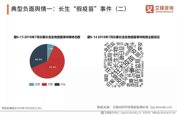 自2018年7月15日事件爆發(fā)一周內(nèi),圍繞“狂犬疫苗”“長生生物”等為主題詞,輿論開始不斷發(fā)酵。媒體輿論整體倒向負(fù)面,所占比例超過一般,而正面輿論僅有7.4%,其內(nèi)容多支持政府及時治理。
