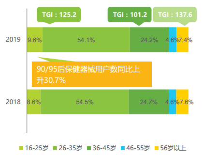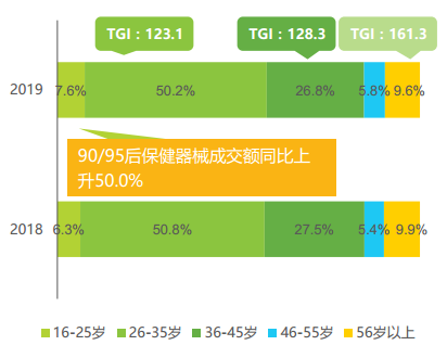 2018&2019年中國保健器械產品用戶數年齡分布