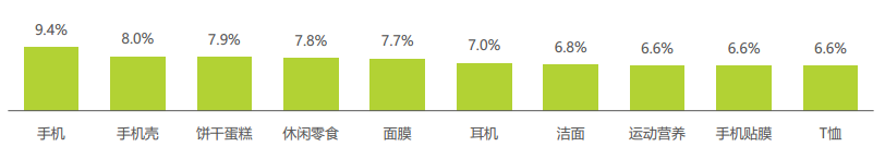 2019年90/95后減肥塑身產品消費群關聯購買TOP10品類