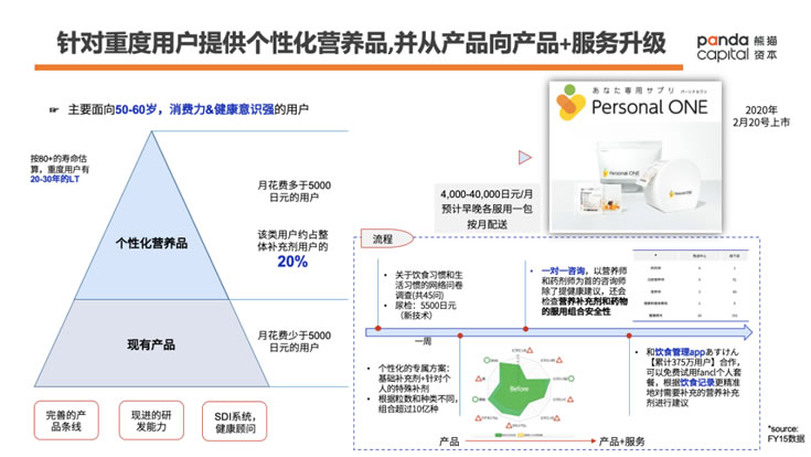 3)針對重度用戶提供個性化營養品,并從產品向“產品+服務”的解決方案升級。