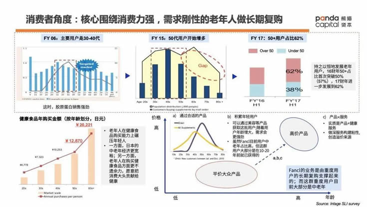4)從用戶角度來說,Fancl主力圍繞消費力強、需求剛性的老年人做長期復購。