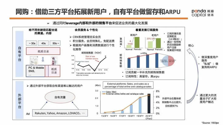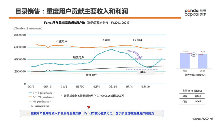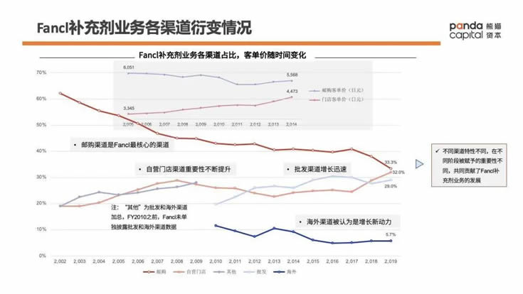 Fancl營養補充劑業務郵購渠道的特點是毛利高,用戶復購好,適合多品類銷售,客單價相對高,適合發展重度用戶。