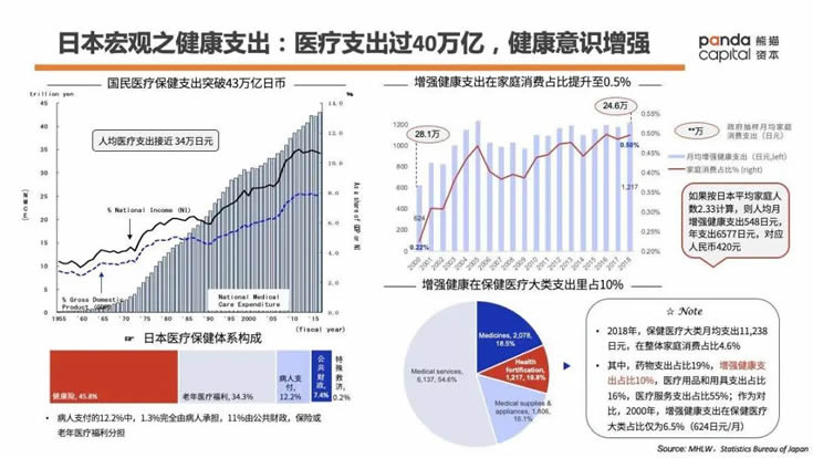 日本人口老齡化加劇等社會性問題,直接體現在了國民醫療支出和家庭健康支出日益增加上。