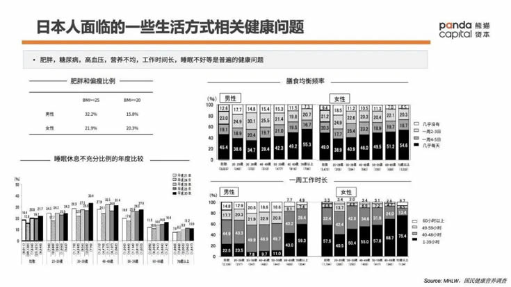 我們看到,中國市場上,無論是老年人在預防疾病的剛性健康需求,還是90后年輕人的“用最貴的產品,熬最長的夜”的“朋克養生”需求,因為人口結構的變化,生活方式不健康導致各類疾病也日益成為社會型問題。加之,中國的健康保險系統不像日本那么發達,人們自發的預防保健意識更為強烈。