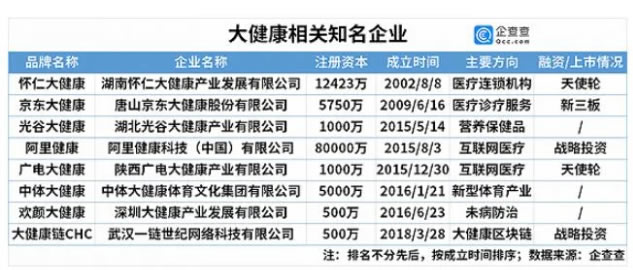值得關注的是,阿里、萬達、華潤置地等各領域巨頭紛紛布局大健康產業。企查查數據顯示,阿里健康的注冊資本達到驚人的8億余元人民幣,主要發展方向為互聯網醫療,并且已經發展到戰略投資階段。