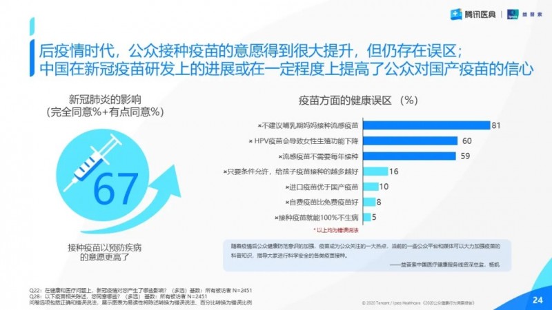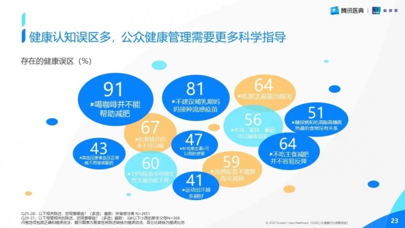2020年11月8日,以“痛點(diǎn)“為主題的第二屆騰訊醫(yī)學(xué)ME大會(huì)登場(chǎng)。騰訊醫(yī)典聯(lián)合益普索Ipsos,在會(huì)議當(dāng)天發(fā)布了《2020公眾健康行為洞察報(bào)告》。本次研究通過(guò)對(duì)全國(guó)各地覆蓋18-59歲的2451名受訪者進(jìn)行在線問(wèn)卷調(diào)查,對(duì)后疫情時(shí)代公眾健康意識(shí),健康狀況,健康管理行為,健康痛點(diǎn)和誤區(qū)等方面進(jìn)行了全方位探索和分析。