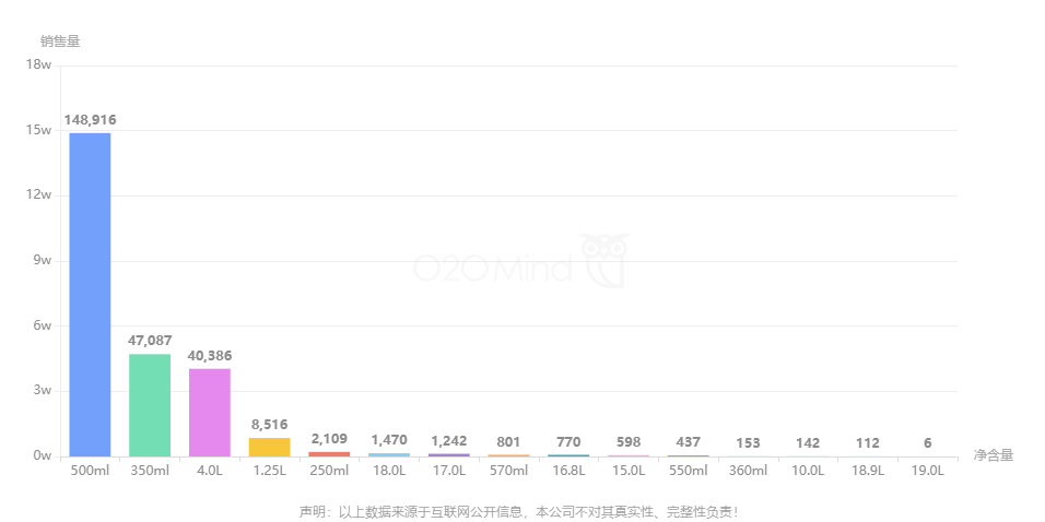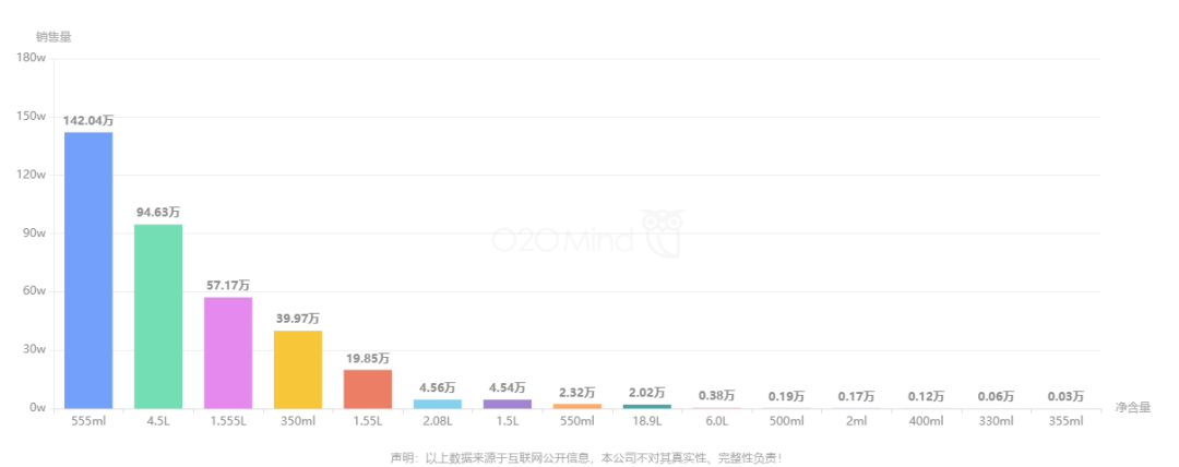 ▲2021年3月景田不同規格飲用水O2O銷量(不完全統計)