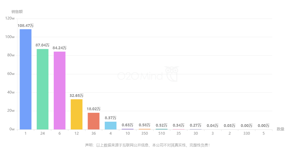 在O2O市場中,除單支購買外,消費者也會選擇成箱購買高端飲用水,24支裝、6支裝、12支裝高端瓶裝水貢獻一定市場份額。