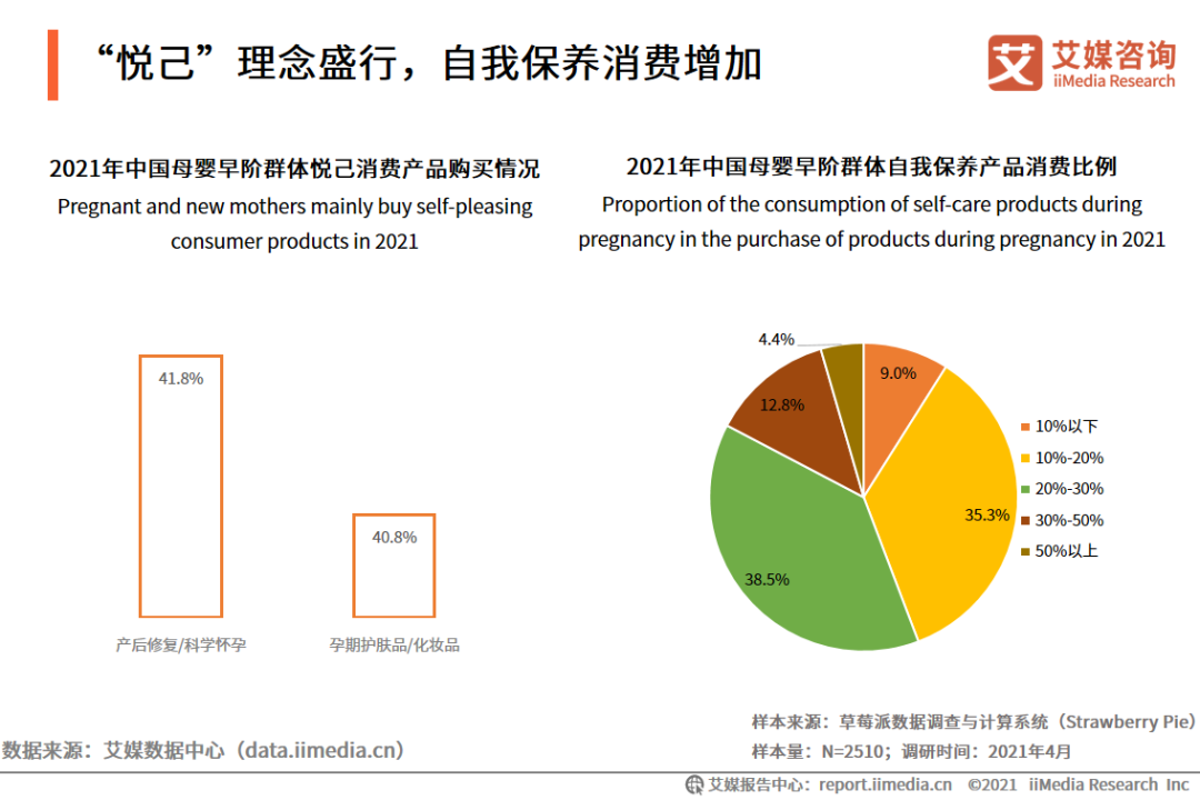 iiMedia Research(艾媒咨詢)數(shù)據(jù)顯示,產(chǎn)后修復(fù)和孕期護(hù)膚彩妝產(chǎn)品已成為母嬰早階群體主要購買的悅己產(chǎn)品之一,其中大部分孕媽在孕期自我保養(yǎng)類產(chǎn)品的消費占比處于10%-30%之間,有少部分孕媽此類消費支出更高。艾媒咨詢分析師發(fā)現(xiàn),“悅己”消費也正日益成為女性主流消費模式,尤其是新生代孕媽,她們的思想更加進(jìn)步,對自身的關(guān)注更顯著,“取悅自己”正成為母嬰行業(yè)長期消費主題之一。
