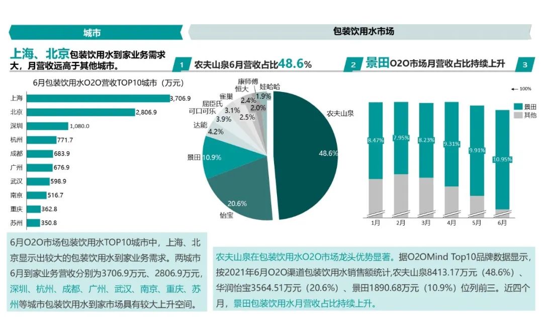 農夫山泉在包裝飲用水O2O市場龍頭優勢顯著。