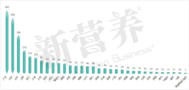 根據(jù)地域,2021年各省獲得備案及注冊(cè)憑證情況千差萬(wàn)別,廣東省和北京市分別以402和354款產(chǎn)品數(shù)量分列第一和第二位,其次是山東省244)、江西省(150)、浙江?。?13)。此外,還有42款進(jìn)口保健食品,分別來(lái)自美國(guó)、加拿大、日本、澳大利亞、丹麥、韓國(guó)和新西蘭。