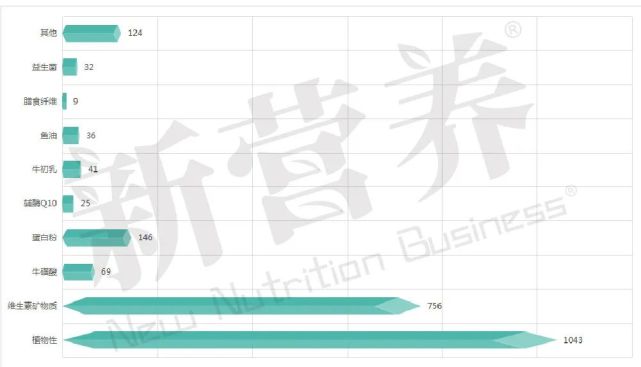 在營(yíng)養(yǎng)素的使用上,植物性和維礦類的產(chǎn)品為兩大大主流產(chǎn)品,占比分別為46%、33%。另外,魚油、蛋白類、膳食纖維等也越來(lái)越受到市場(chǎng)的歡迎。