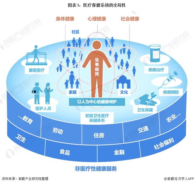 國外機構PHCPI組織對高質量初級醫療體系的全局性做了如下定義:全面性是指針對健康問題、不同年齡層和不同治療方式提供全面和適當的護理。綜合護理應涉及廣泛的預防、促進、慢性、行為和康復服務,并包括在初級保健級別評估患者的風險、需求和偏好。除了服務能力的擴展之外,綜合性還可以指在初級衛生保健中整合預防、治療和康復治療,以及治療“整個人”的方法,而不僅僅是特定的器官系統或疾病。2020年9月22日,習近平總書記主持召開教育文化衛生體育領域專家代表座談會時強調“要把人民健康放在優先發展戰略地位,努力全方位全周期保障人民健康,加快建立完善制度體系,保障公共衛生安全,加快形成有利于健康的生活方式、生產方式、經濟社會發展模式和治理模式,實現健康和經濟社會良性協調發展。”講話雖然未提到“大健康”,但是其核心要義和大健康的全局性和全周期性不謀而合。