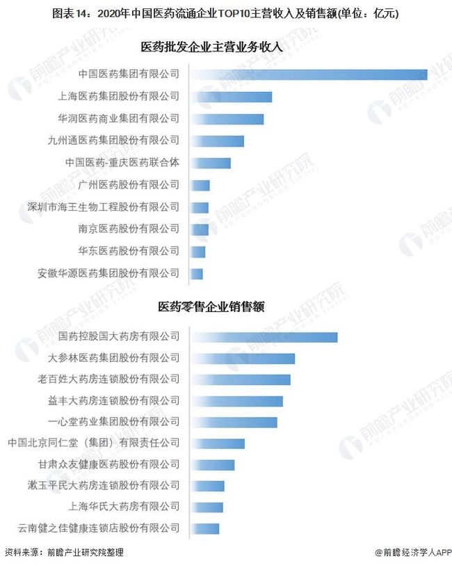 2020年中國醫藥集團、上海醫藥集團和華潤醫藥流通集團牢牢占據醫藥批發企業前三強席位。而醫藥零售企業則以大參林、益豐、一心堂、老百姓為代表,加速整合擴張。2020年疫情促進了抗疫物資的銷售流通,醫藥零售企業收入迎來增長。近年來隨著我國信息化、數字化不斷提升,在互聯網醫療政策的加持下,我國頭部醫藥流通行業企業在加速線下渠道資源整合優化的同時,紛紛向線上發展,布局“互聯網+”醫療板塊業務,搶占先機。醫藥政策改革不斷實施的過程中,零售藥店是非住院用藥的重要選擇渠道,景氣度相對較高。