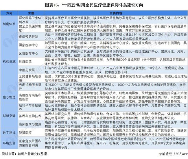 《中華人民共和國國民經濟和社會發展第十四個五年規劃和2035年遠景目標綱要》從制度體系、機構設施、核心制造、創新突破、數字建設、環境安全6大方向出發,豐富了我國全民醫療健康體系建設的內涵。人民健康上升到戰略高度,我國大健康行業將迎來全方位發展。