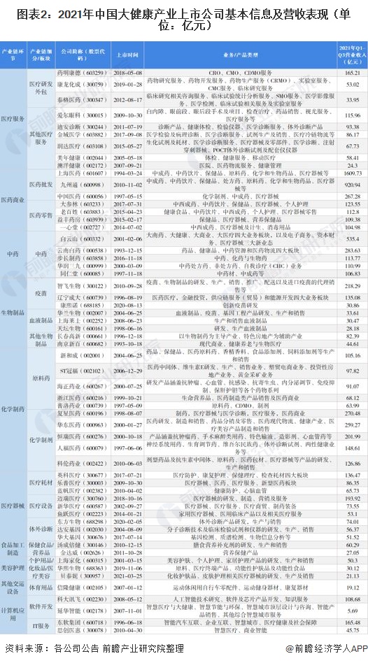 圖表1:2021年大健康產(chǎn)業(yè)上市公司匯總