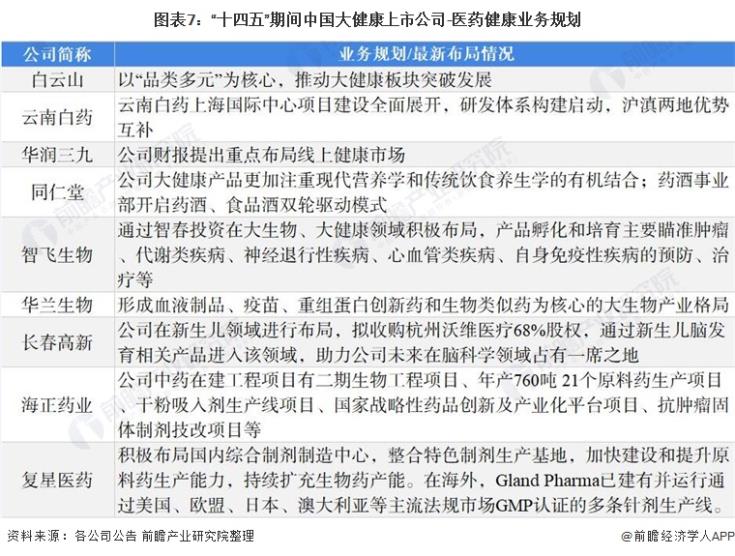 圖表7:“十四五”期間中國大健康上市公司-醫(yī)藥健康業(yè)務規(guī)劃