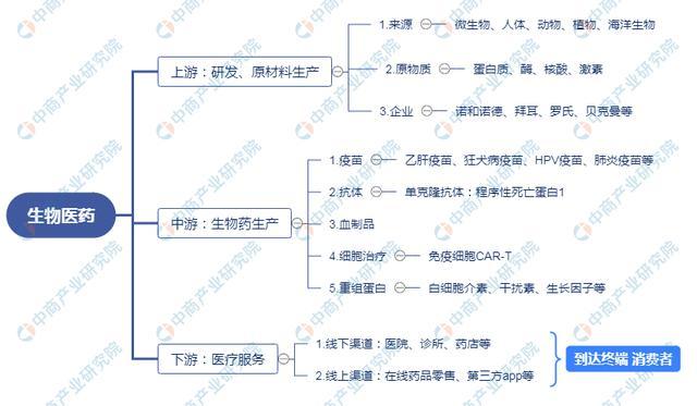 生物醫藥產業鏈中,行業上游為產品的研發和原材料的生產,行業中游為生物藥產品及生物藥生產商,行業下游為各醫療商業以及通過線上線下渠道服務終端消費者。