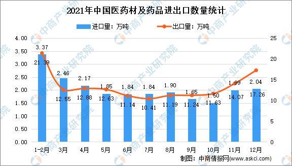我國醫藥品進口量增長迅猛。2021年我國醫藥材及藥品進口量達22.6萬噸,同比增長3.1%;進口額達446.6億美元,同比增長20.1%。出口量達146.4萬噸,同比增長11.4%;出口額達496.2億美元,同比增長115.5%。