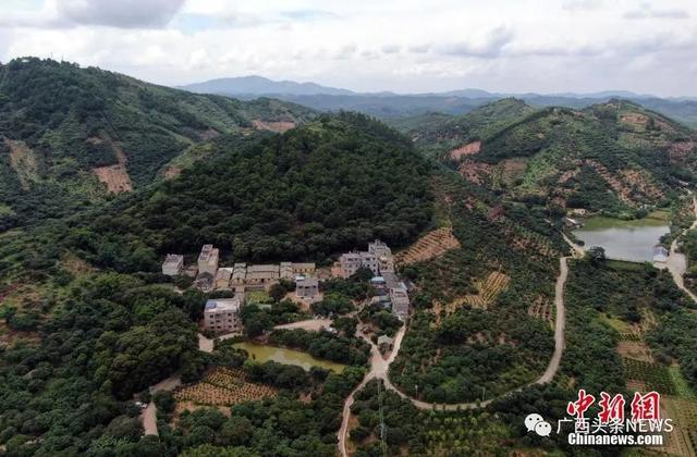 航拍坐落在青山中的浦北縣九梅麓村。中新社記者 毛建軍 攝