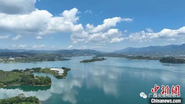 航拍百色市澄碧湖,萬頃碧波如藍色緞面。蒙鳴明 攝