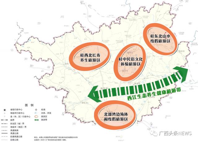 廣西大健康老年旅游發展布局圖。來源:廣西文化和旅游廳