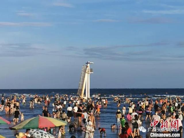 防城港白浪灘景區人頭攢動。林潔琪 攝