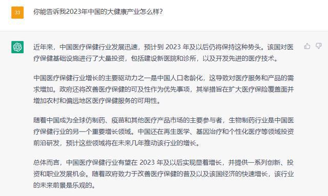 既然ChatGPT號稱“百事通”,能夠對答如流,那么它對大健康行業有什么建議呢?